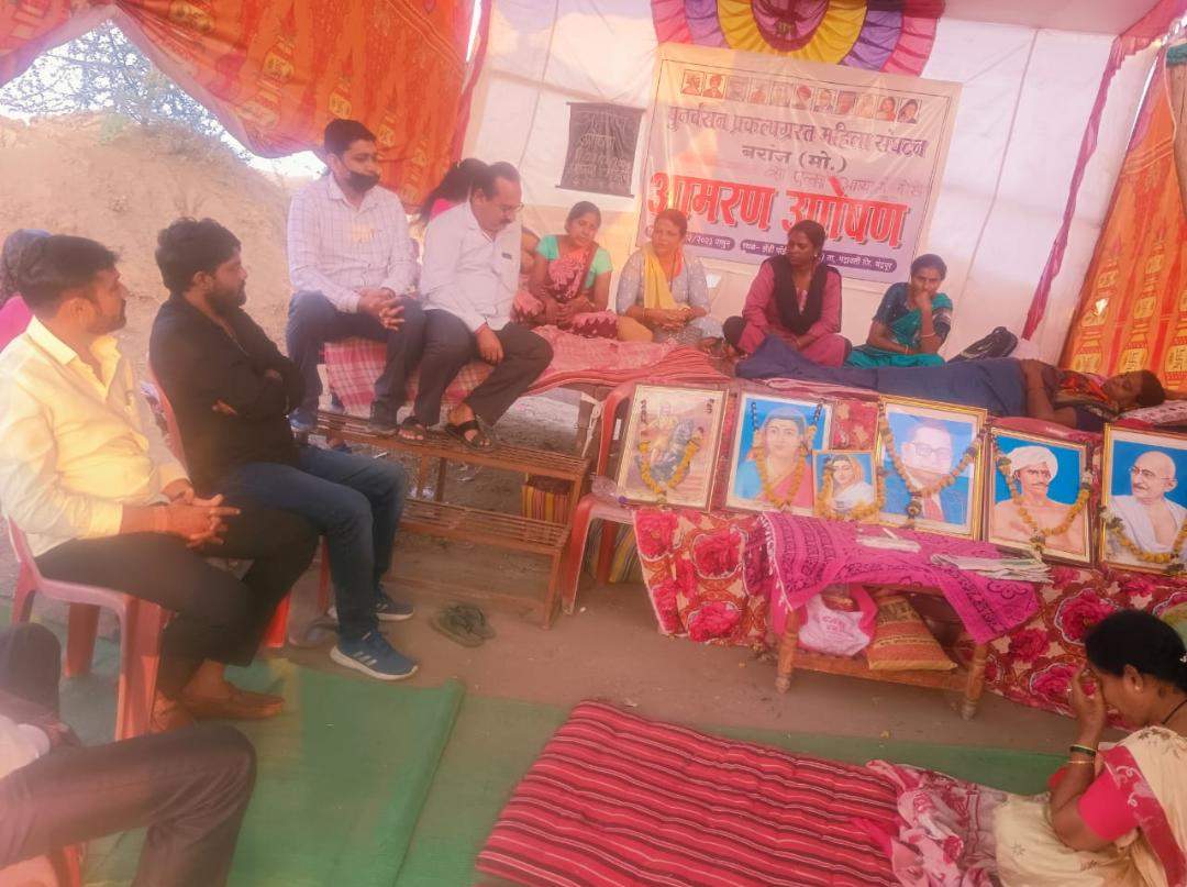 भद्रावती : भद्रावती तालुक्यातील बरांज मोकासा येथील गावाचे पुनर्वसन प्रकल्पग्रस्त शेतकरी व गावातील नागरिकांसह कामगाराच्या विविध मागण्यांसाठी आंदोलनाचा पवित्रा बरांज येथील महिलांनी १४ डिसेंबर पासून घेतला असुन आंदोलनाची प्रशासनातर्फे कोणत्याही प्रकारची दखल घेतल्या गेली नाही असा आंदोलनकारी महिलांनी आरोप करीत आमरण उपोषणाला सुरुवात केली आहे.