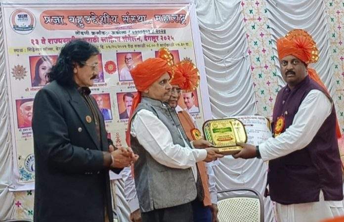 рд╕рдорд╛рдЬрдЬрд╛рдЧреГрддреА рдЖрдгрд┐ рд╕рддреНрдпрд╢реЛрдзрдХ рд╡рд┐рдЪрд╛рд░рд╛рдВрдЪреНрдпрд╛ рдкреНрд░рд╕рд╛рд░рд╛рд╕рд╛рдареА рдХрд╛рд░реНрдпрд░рдд рдЕрд╕рд▓реЗрд▓реНрдпрд╛ рд╕рдорд╛рдЬрд╕реЗрд╡рдХ рд░рдШреБрдирд╛рде рдвреЛрдХ рдпрд╛рдВрдирд╛ рдкреНрд░рдЬреНрдЮрд╛ рдмрд╣реБрдЙрджреНрджреЗрд╢реАрдп рд╕рдВрд╕реНрдерд╛, рдЕрдХреЛрд▓рд╛ (рдорд╣рд╛рд░рд╛рд╖реНрдЯреНрд░) рддрд░реНрдлреЗ рджреЗрдгреНрдпрд╛рдд рдпреЗрдгрд╛рд░рд╛ тАЬрд╕рдорд╛рдЬ рд╢рд┐рд░реЛрдордгреА рдкреБрд░рд╕реНрдХрд╛рд░тАЭ рдкреНрд░рджрд╛рди рдХрд░рдгреНрдпрд╛рдд рдЖрд▓рд╛. рд╣рд╛ рд╕рдиреНрдорд╛рди 13 рд╡реЗ рд░рд╛рдЬреНрдпрд╕реНрддрд░реАрдп рдорд░рд╛рдареА рд╕рд╛рд╣рд┐рддреНрдп рд╕рдВрдореЗрд▓рди, рджреЗрдЧрд▓реВрд░ – 2025 рдордзреНрдпреЗ рд╕рдВрд╕реНрдереЗрдЪреЗ рд╕рдЪрд┐рд╡ рд╡ рдЬреНрдпреЗрд╖реНрда рдХрд╡реА рдордХрд░рдВрдж рдШрд╛рдгреЗрдХрд░ рдпрд╛рдВрдЪреНрдпрд╛ рд╢реБрднрд╣рд╕реНрддреЗ рджреЗрдгреНрдпрд╛рдд рдЖрд▓рд╛.