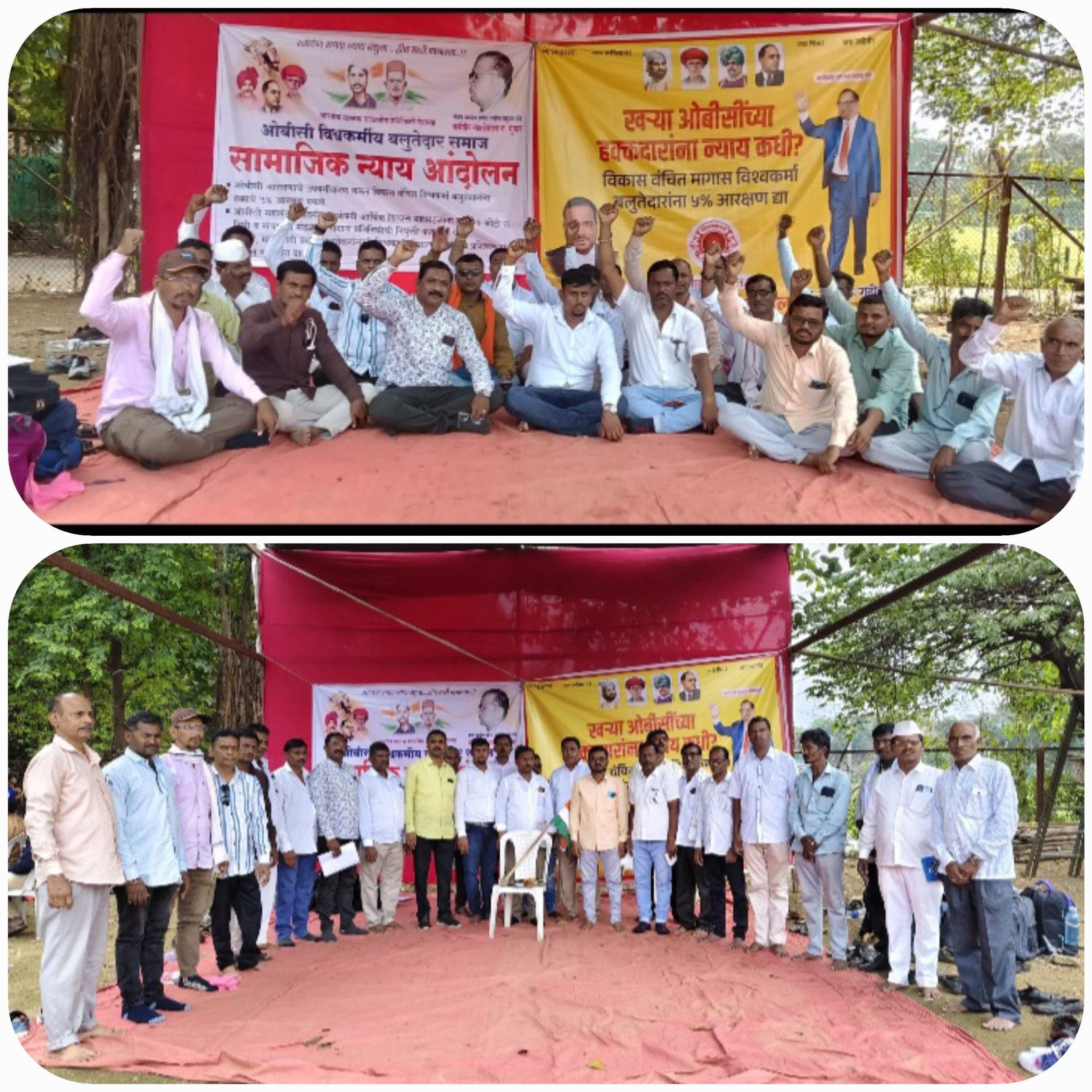 विश्वकर्मा बलुतेदारांच्या सामाजिक न्याय लढ्याला सकल मराठा समाजाचा पाठिंबा असेल असे मत आंदोलनाला भेट देऊन मराठा आंदोलनाचे नेते योगेश केदार यांनी समर्थन दिले.