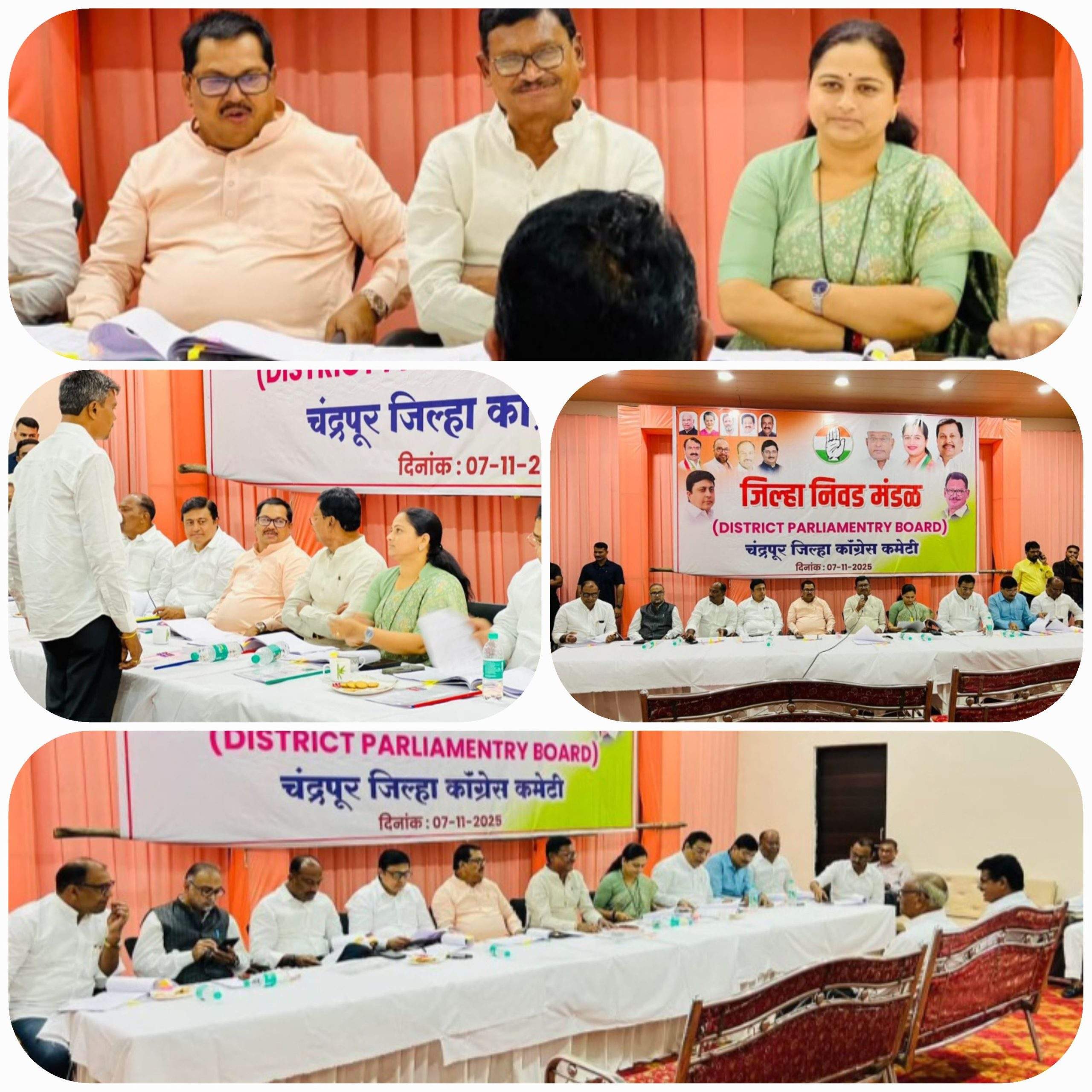 चंद्रपूर : स्थानिक स्वराज्य संस्था सार्वत्रिक निवडणूक २०२५ च्या पार्श्वभूमीवर चंद्रपूर जिल्हा काँग्रेसतर्फे जिल्हा निवड मंडळाची बैठक साई सेलिब्रेशन हॉल, चंद्रपूर🚼 येथे मोठ्या उत्साहात पार पडली. या बैठकीत नगरपरिषद व नगरपंचायतींसाठी इच्छुक उमेदवारांच्या मुलाखती घेण्यात आल्या.