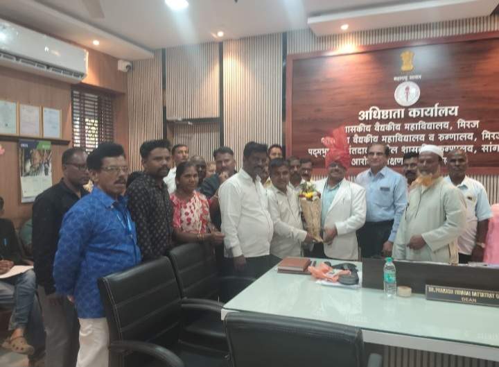 рд╕рд╛рдВрдЧрд▓реА (рдкреНрд░рддрд┐рдирд┐рдзреА) тАФ рдорд┐рд░рдЬ рд╕рд┐рд╡реНрд╣рд┐рд▓ рд╣реЙрд╕реНрдкрд┐рдЯрд▓, рд╢рд╛рд╕рдХреАрдп рд╡реИрджреНрдпрдХреАрдп рдорд╣рд╛рд╡рд┐рджреНрдпрд╛рд▓рдп рдЖрдгрд┐ рд╕рдВрд▓рдЧреНрди рдЖрд╕реНрдерд╛рдкрдирд╛рдВрдордзреНрдпреЗ рдЕрдзрд┐рд╖реНрдард╛рддрд╛ рдореНрд╣рдгреВрди рдирд┐рдпреБрдХреНрдд рдЭрд╛рд▓реЗрд▓реНрдпрд╛ рдбреЙ. рдкреНрд░рдХрд╛рд╢ рдЧреБрд░рд╡ рдпрд╛рдВрдЪрд╛ рд╡рдВрдЪрд┐рдд рдмрд╣реБрдЬрди рдорд╛рдерд╛рдбреА рдЯреНрд░рд╛рдиреНрд╕рдкреЛрд░реНрдЯ рд╡ рдЬрдирд░рд▓ рдХрд╛рдордЧрд╛рд░ рдпреБрдирд┐рдпрди (рдорд╣рд╛рд░рд╛рд╖реНрдЯреНрд░ рд░рд╛рдЬреНрдп, рд╕рд╛рдВрдЧрд▓реА) рдкреНрд░рдгрд┐рдд рдиреНрдпрд╛рдпрд╛рд▓рдпреАрди рдмрджрд▓реА рдХрд╛рдордЧрд╛рд░ рдЖрдгрд┐ рдХрдВрддреНрд░рд╛рдЯреА рдХрд╛рдордЧрд╛рд░ рд╕рдВрдШрдЯрдиреЗрддрд░реНрдлреЗ рдЖрдЬ рднрд╡реНрдп рд╕рддреНрдХрд╛рд░ рдХрд░рдгреНрдпрд╛рдд рдЖрд▓рд╛.