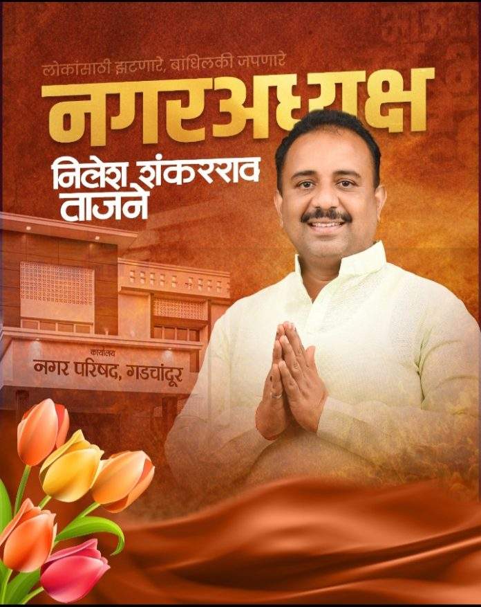 गडचांदूर नगरपालिकेच्या सार्वत्रिक निवडणुकीचे निकाल आज जाहीर झाले. नगराध्यक्षपदी शेतकरी संघटना आघाडी व ताजने गटाच्या उमेदवार नीलेश ताजने यांनी निर्णायक बहुमताने विजय मिळवला. ताजने यांना 5,736 मत मिळाले तर काँग्रेसचे सचिन भोयर 3,313 आणि भाजपचे अरविंद डोहे 2,865 मतांवर ठेपले. त्यामुळे नीलेश ताजने हे नव्याने नगराध्यक्ष म्हणून निवडले गेले आहेत.