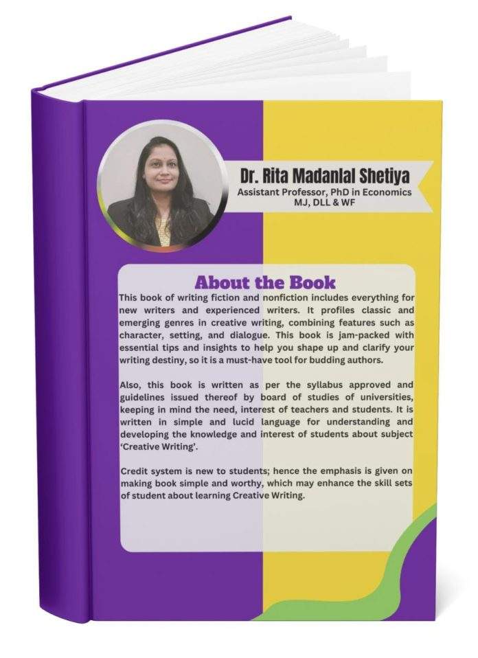 डॉ. रिता शेटीया लिखित सर्जनशील लेखन हे नवीन शैक्षणिक धोरणानुसार निवड-आधारित क्रेडिट सिस्टम नुसार हे पुस्तक लिहिण्यात आले आहे. शिक्षक आणि विद्यार्थ्यांची गरज/आवड लक्षात घेऊन ‘क्रिएटिव्ह रायटिंग’ विषयाबद्दल विद्यार्थ्यांचे ज्ञान आणि आवड समजून घेण्यासाठी आणि विकसित करण्यासाठी हे सोप्या आणि स्पष्ट भाषेत लिहिले आहे. ज्या विद्यार्थ्यांना ‘क्रिएटिव्ह रायटिंग’ विषयाची आवड आहे किंवा जे या क्षेत्रात करिअर करू इच्छितात, त्यांच्यासाठी हे पुस्तक एक भक्कम पाया तयार करते.