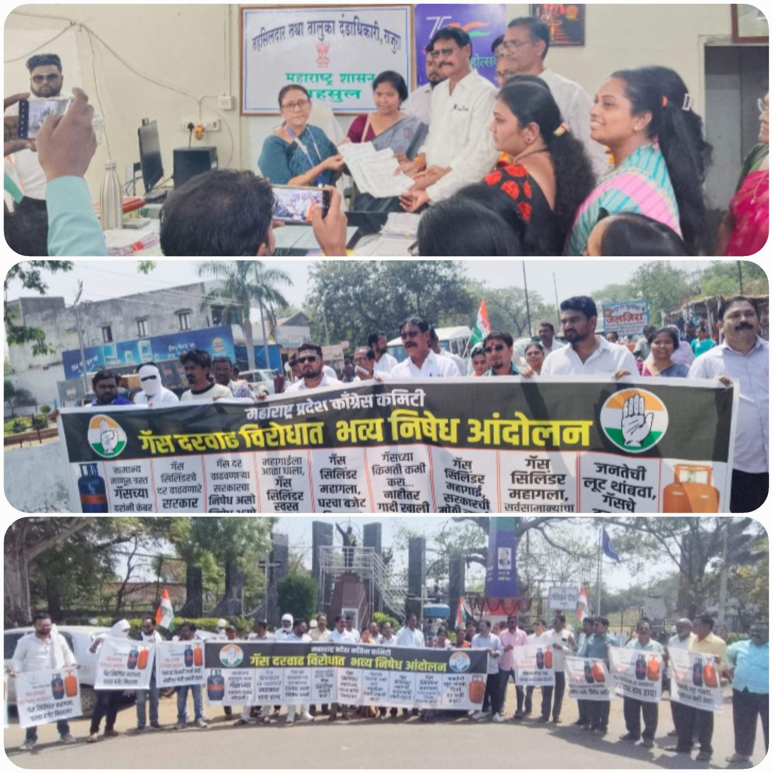 राजुरा (दिनांक 12मार्च .) : केंद्र व राज्य शासनाच्या इंधन दरवाढीच्या धोरणाविरोधात तसेच घरगुती गॅस सिलेंडरच्या वाढलेल्या किमती आणि कृत्रिम तुटवड्याच्या निषेधार्थ आज राजुरा येथे काँग्रेसच्या वतीने धरणे आंदोलन व निषेध रॅली काढण्यात आली. आंदोलनाच्या शेवटी तहसीलदारांच्या मार्फत महामहिम राष्ट्रपती द्रौपदी मुर्मू यांना मागण्यांचे निवेदन पाठविण्यात आले.