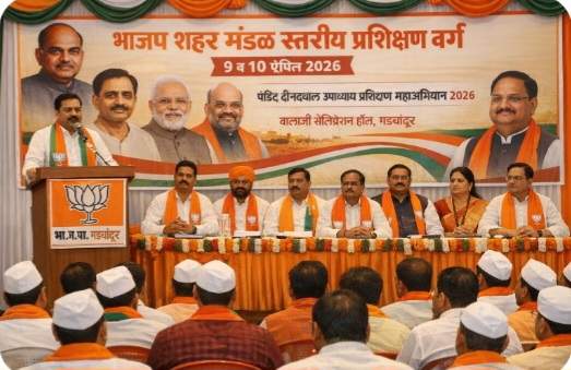 गडचांदूर : भारतीय जनता पक्षाच्या वतीने पंडित दीनदयाळ उपाध्याय प्रशिक्षण महाअभियान २०२६ अंतर्गत गडचांदूर शहर मंडळ स्तरीय प्रशिक्षण वर्गाचे आयोजन करण्यात आले असून हा दोन दिवसीय प्रशिक्षण वर्ग ९ व १० एप्रिल २०२६ रोजी बालाजी सेलिब्रेशन हॉल, गडचांदूर येथे पार पडणार आहे.