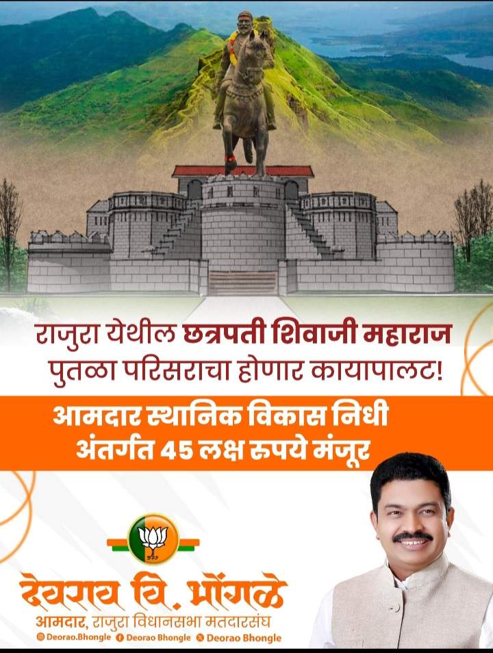 राजुरात ‘छत्रपती शिवाजी महाराज’ पुतळा परिसराचा होणार कायापालट! 🚩आमदार देवराव भोंगळे यांच्या स्थानिक विकास निधीतून ४५ लक्ष रुपये मंजूर