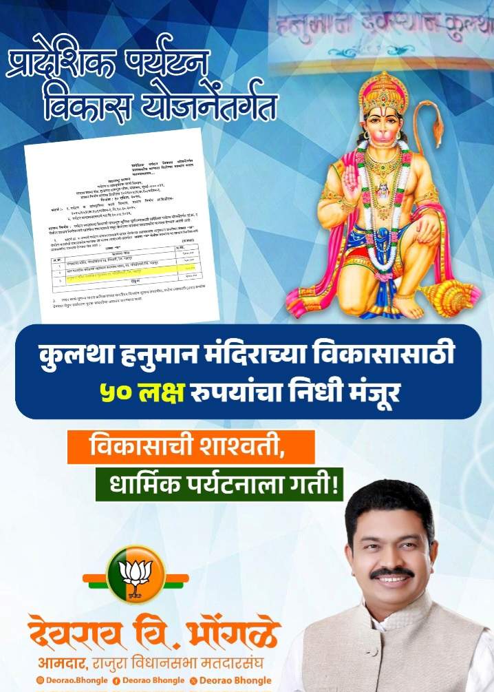 рд╣реА рдмрд╛рдм рд▓рдХреНрд╖рд╛рдд рдШреЗрдКрди рдЖрдорджрд╛рд░ рднреЛрдВрдЧрд│реЗ рдпрд╛рдВрдиреА рдкреНрд░рд╛рджреЗрд╢рд┐рдХ рдкрд░реНрдпрдЯрди рд╡рд┐рдХрд╛рд╕ рдпреЛрдЬрдиреЗрдЕрдВрддрд░реНрдЧрдд рдпрд╛ рджреЗрд╡рд╕реНрдерд╛рдирд╛рдЪрд╛ рд╡рд┐рдХрд╛рд╕ рдХрд░рдгреНрдпрд╛рд╕рд╛рдареА рд╡рд┐рд╢реЗрд╖ рдкреНрд░рдпрддреНрди рдХреЗрд▓реЗ. рддреНрдпрд╛рдВрдЪреНрдпрд╛ рдкрд╛рдардкреБрд░рд╛рд╡реНрдпрд╛рдореБрд│реЗ рд╢рд╛рд╕рдирд╛рдиреЗ рдпрд╛ рдкреНрд░рдХрд▓реНрдкрд╛рд▓рд╛ рдордВрдЬреБрд░реА рджреЗрдд релреж рд▓рд╛рдЦ рд░реБрдкрдпрд╛рдВрдЪрд╛ рдирд┐рдзреА рдордВрдЬреВрд░ рдХреЗрд▓рд╛ рдЖрд╣реЗ.